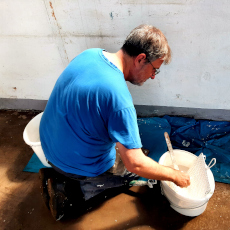Zwischendurch gehen nach einem Besich der InterModellbau auch die Arbeiten im Schuppen weiter. Die Drehbank haben wir verschrottet, Wände restauriert und gestrichen und die eingelagerte Druckluftanlage im Lokschuppen abgestellt.